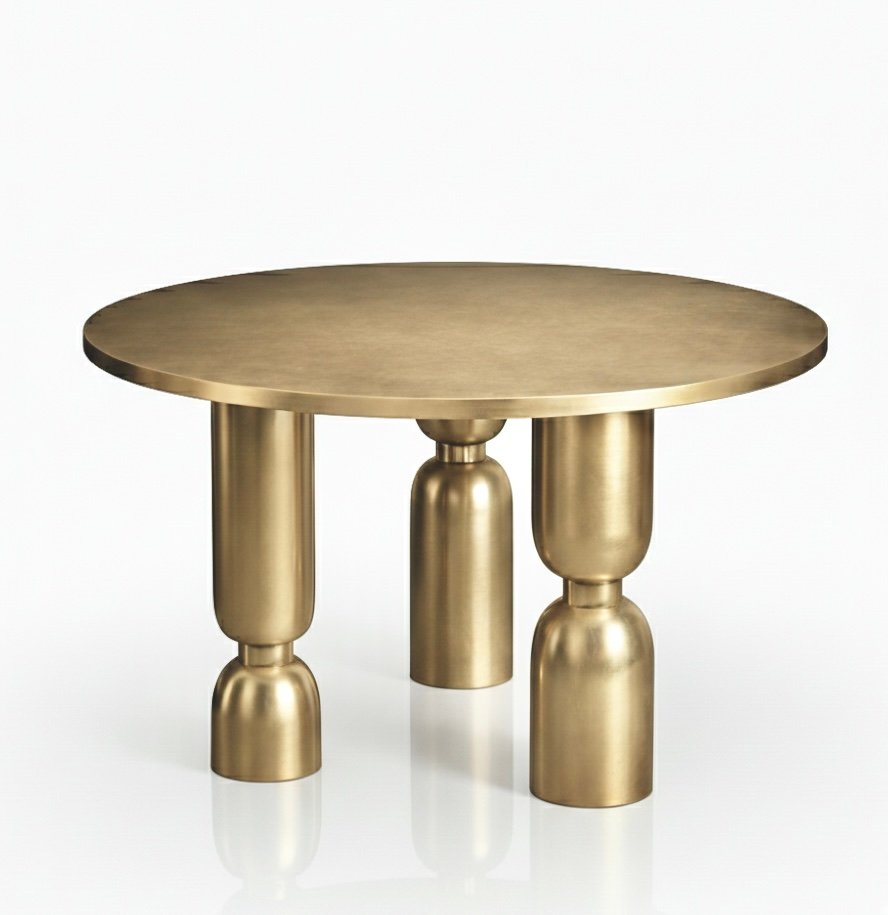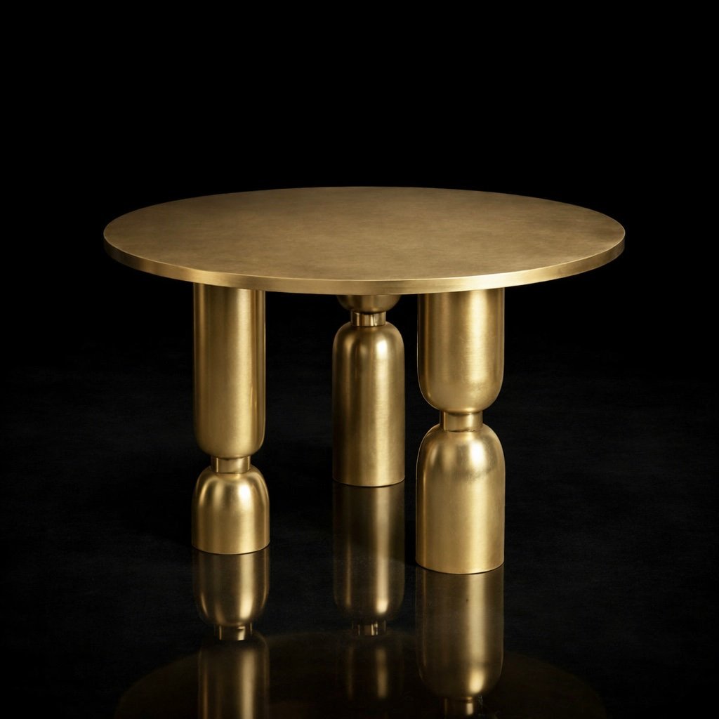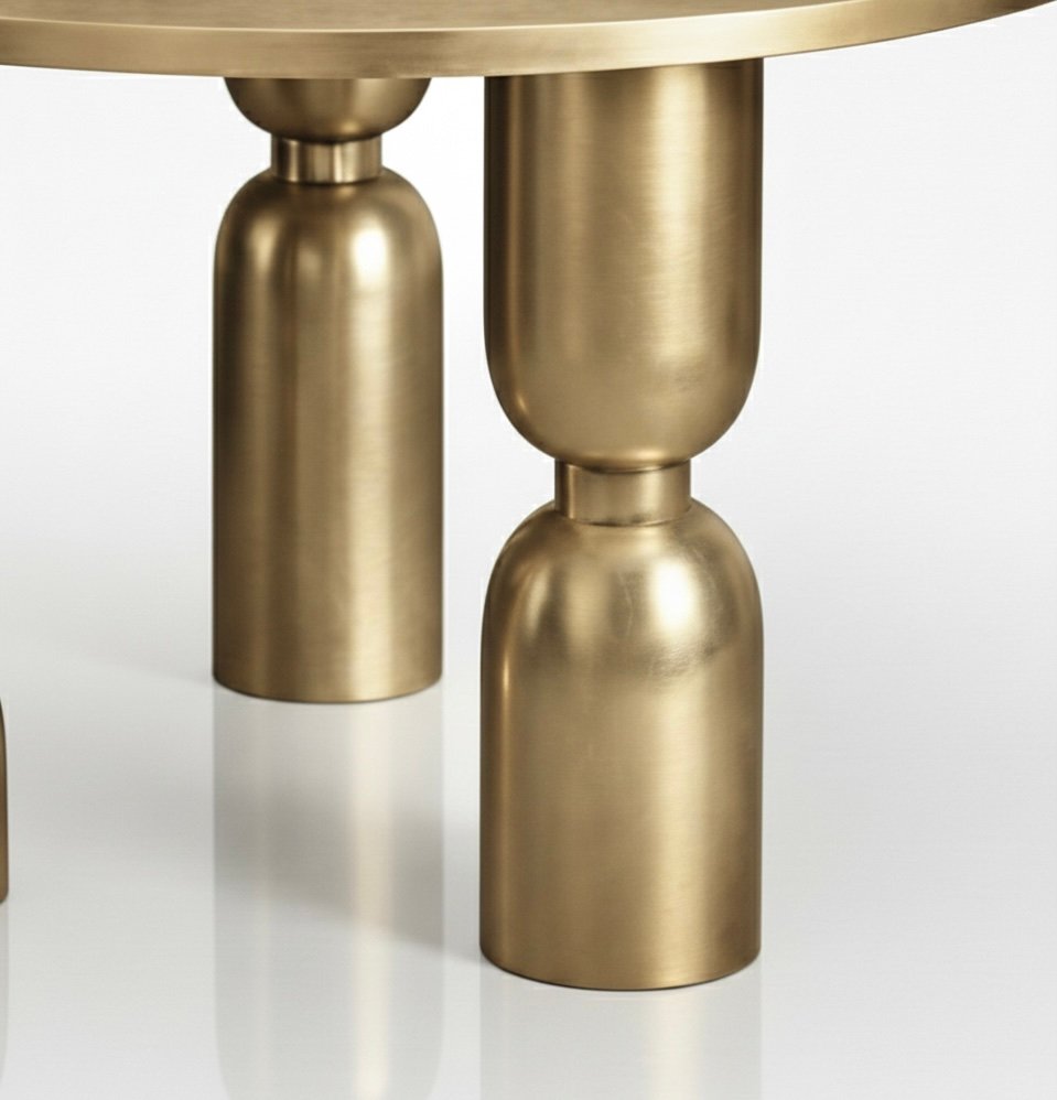 Crafted in solid brass with an internal core for reinforced strength, the table offers both visual weight and structural durability. The smooth top provides a practical surface, while the sculpted base transforms the piece into a refined focal point.