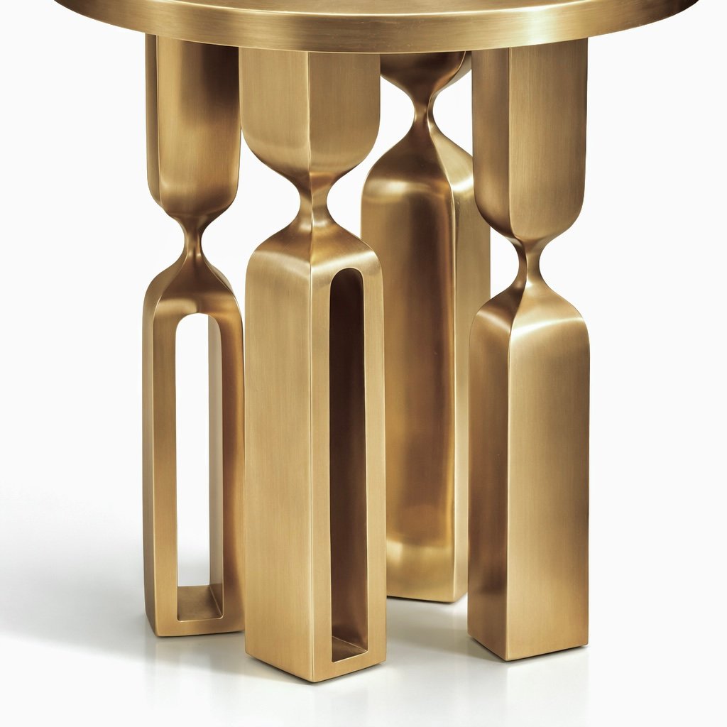 Elevate your interior with this sculptural side table crafted in natural brass over a solid wood core. Designed with a refined round top and an architectural base, this statement accent table blends modern design with artisanal craftsmanship.