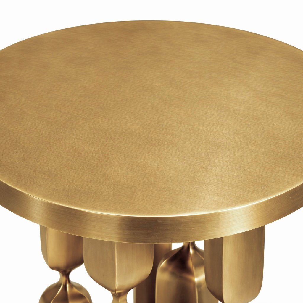 The brushed natural brass finish offers a warm, while the internal wood structure provides strength and durability. Its compact proportions make it ideal as a sofa side table, bedside table, or luxury accent piece in living rooms, bedrooms, lounges, or hospitality spaces