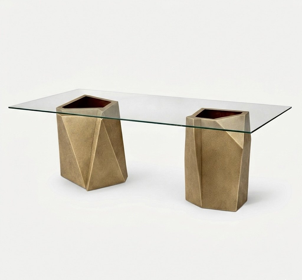 Crafted in our dedicated brass workshop, this sculptural table leg is made from solid brass with an internal reinforced wood core for enhanced durability and structural stability.