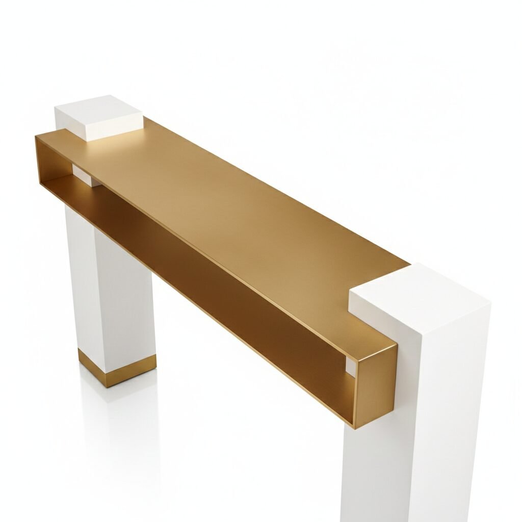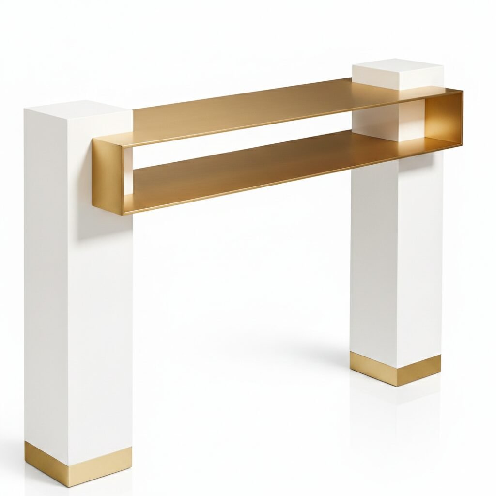 Its minimalist structure makes it ideal for entryways, hallways, or modern living interiors. Precision craftsmanship ensures durability, stability, and a refined luxury presence suited for residential or hospitality spaces.