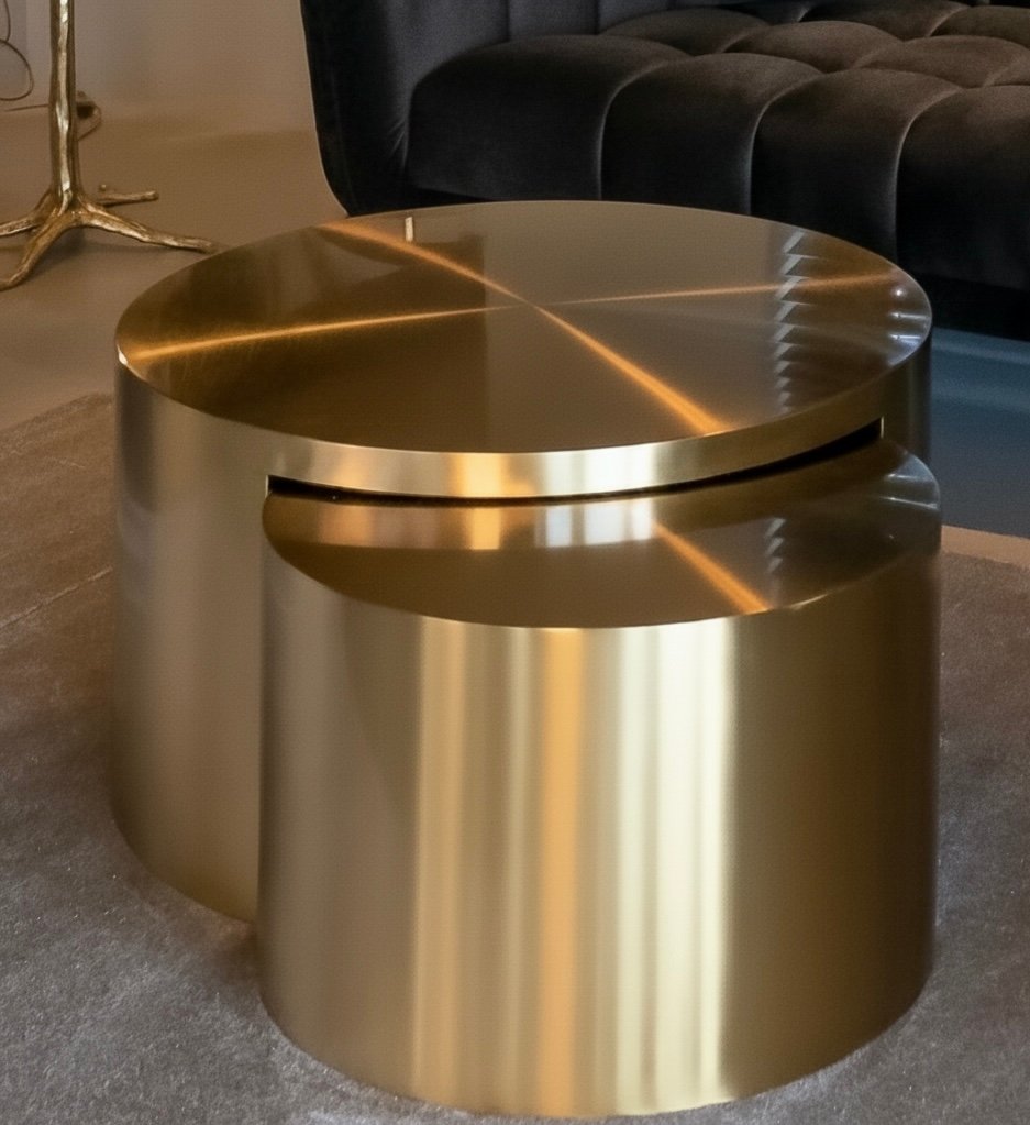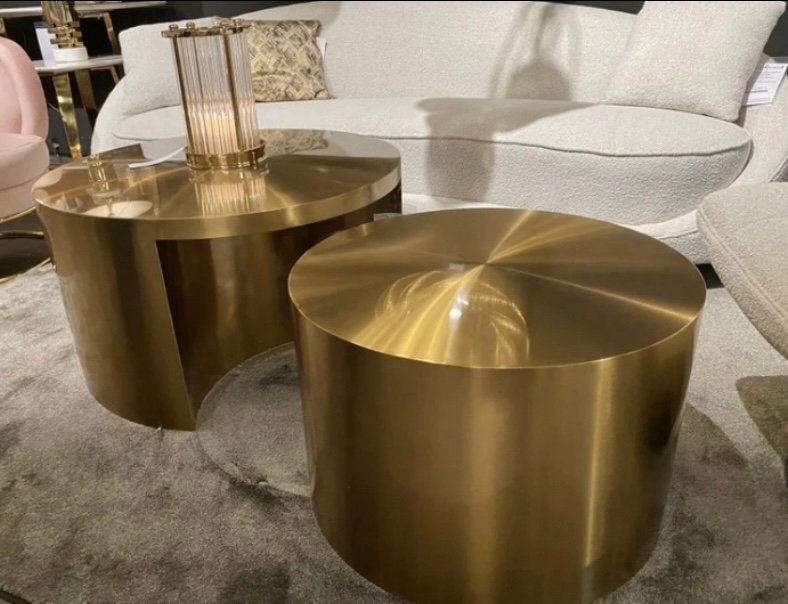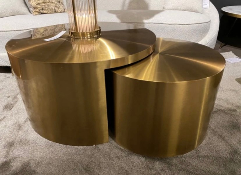 Elevate your living space with this luxury nesting coffee table set, crafted from natural brass and supported internally with a solid wood structure for enhanced durability.