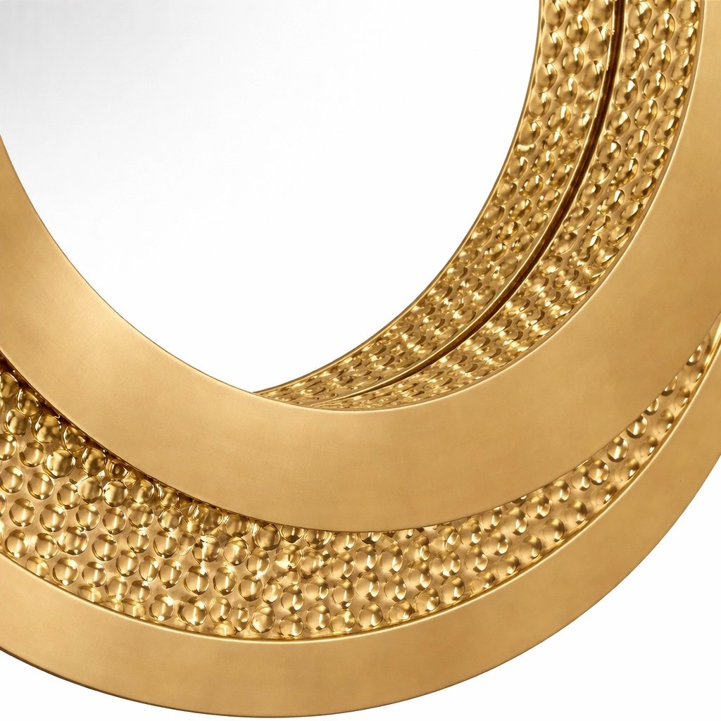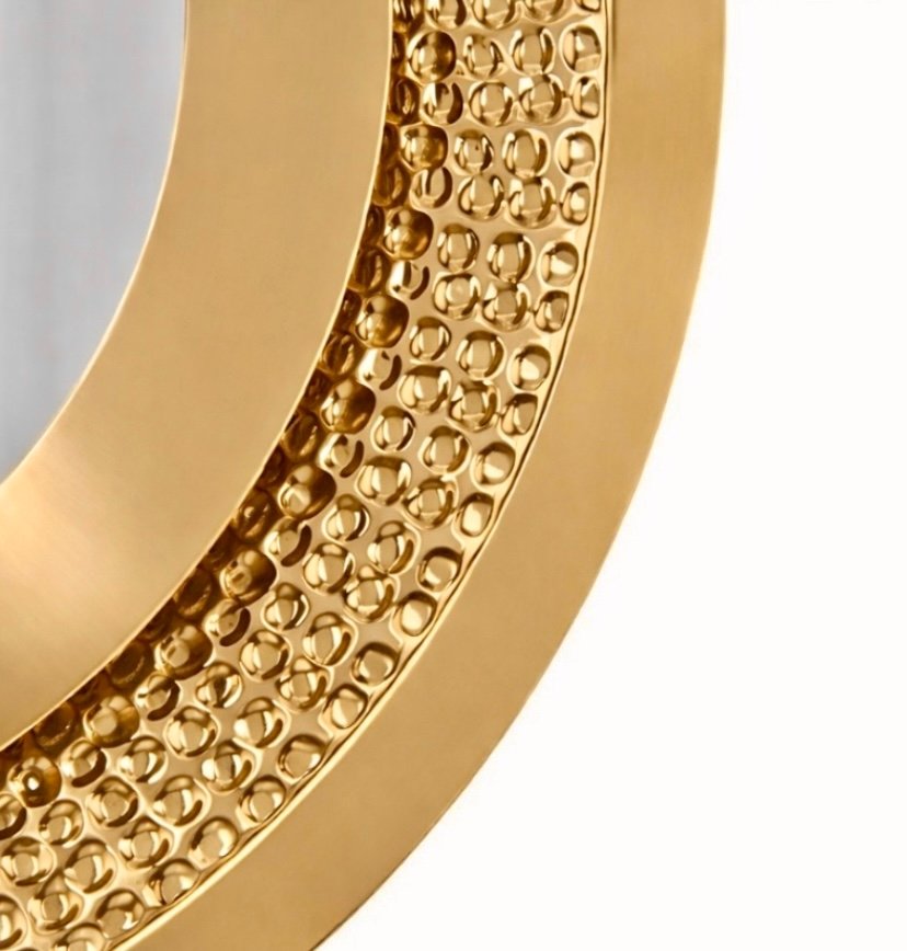 This handcrafted round wall mirror is made from solid natural brass designed with a sculptural textured rim that adds depth character and a refined decorative presence to the wall
