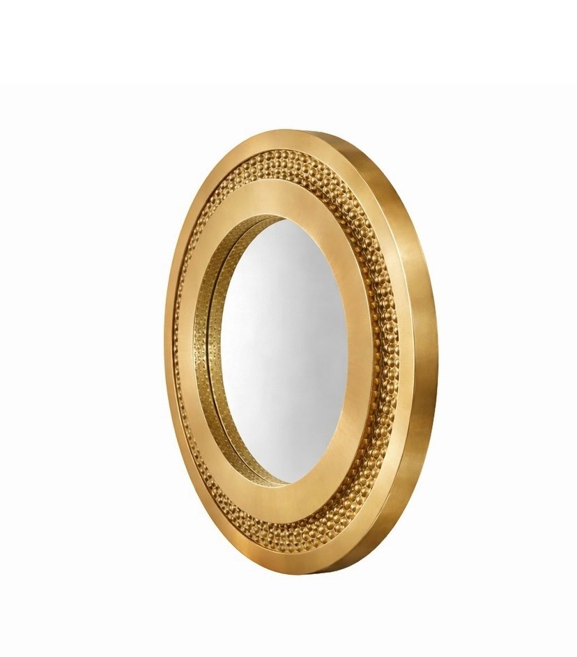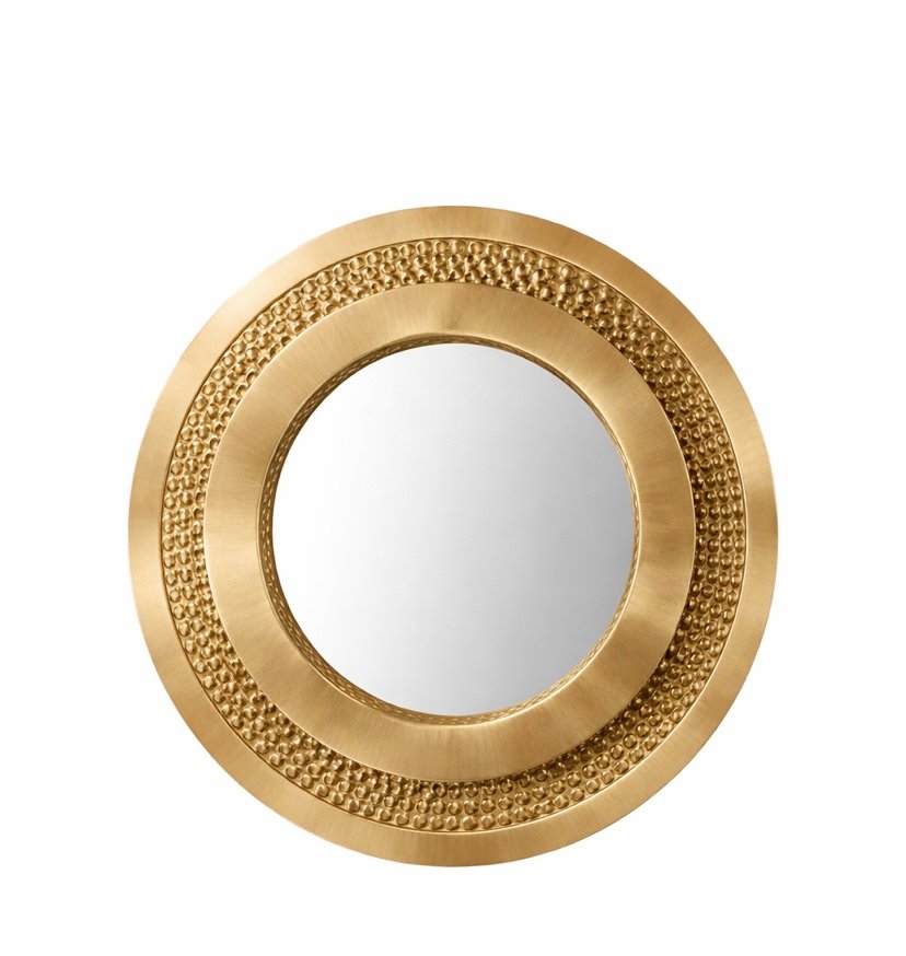 At the center sits a high quality glass mirror framed by the detailed brass surround creating a balanced and elegant composition