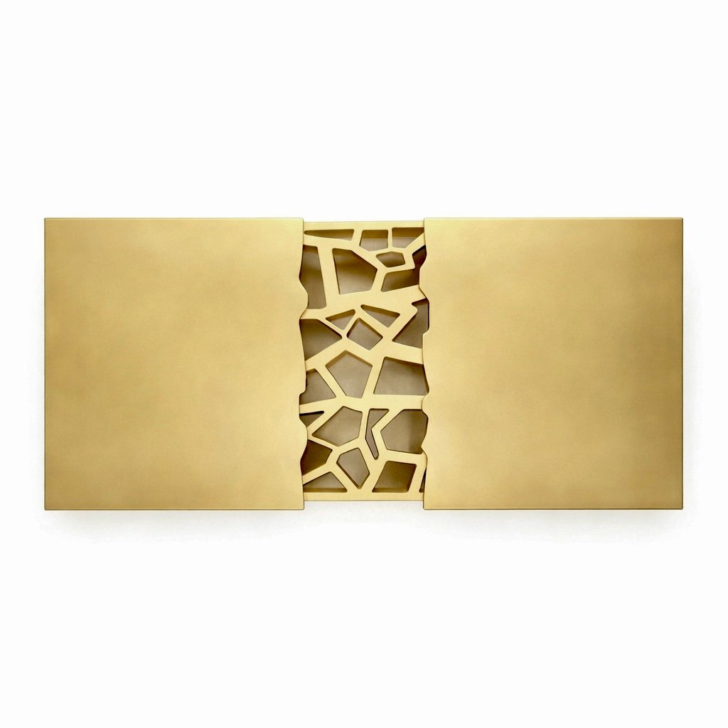 Entirely executed in brass, the piece reflects light subtly across its planes and angles, enhancing the perception of depth while maintaining a balanced, contemporary aesthetic.