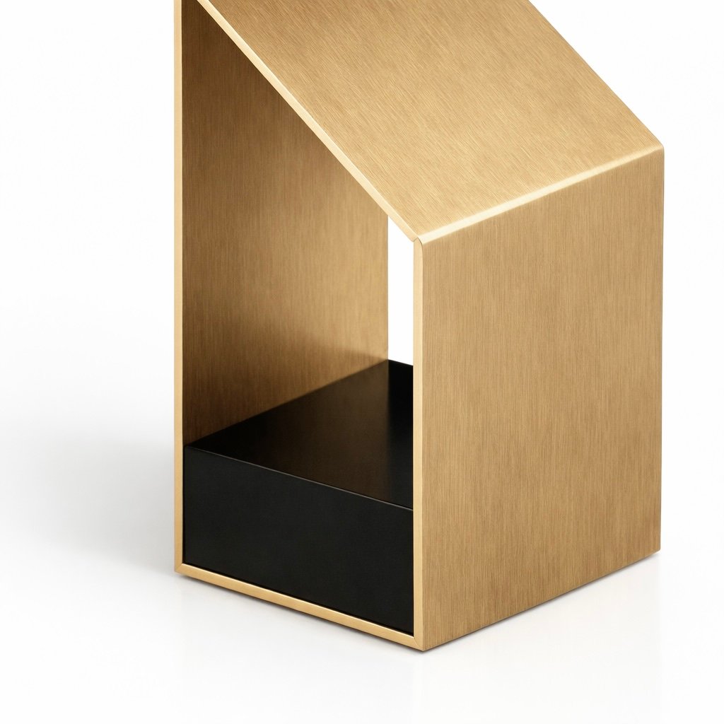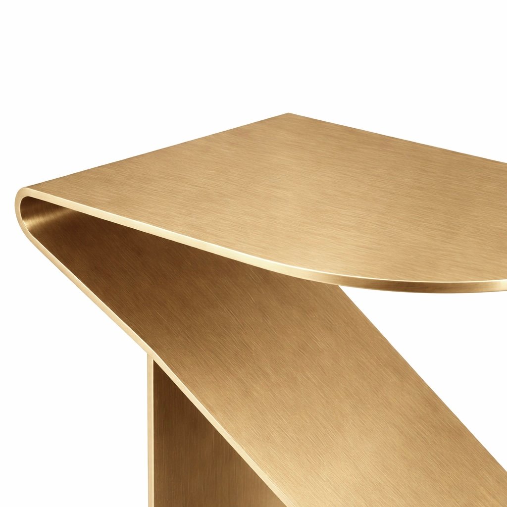 A bold, architectural piece defined by its sharp angles and fluid silhouette. The Oblique side table is crafted entirely in brass, forming a continuous sculptural structure that feels both modern and timeless.