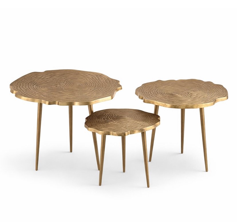 Designed as a nesting set, the tables can be styled together or used separately, bringing warmth, sculptural form, and timeless elegance to luxury interiors.