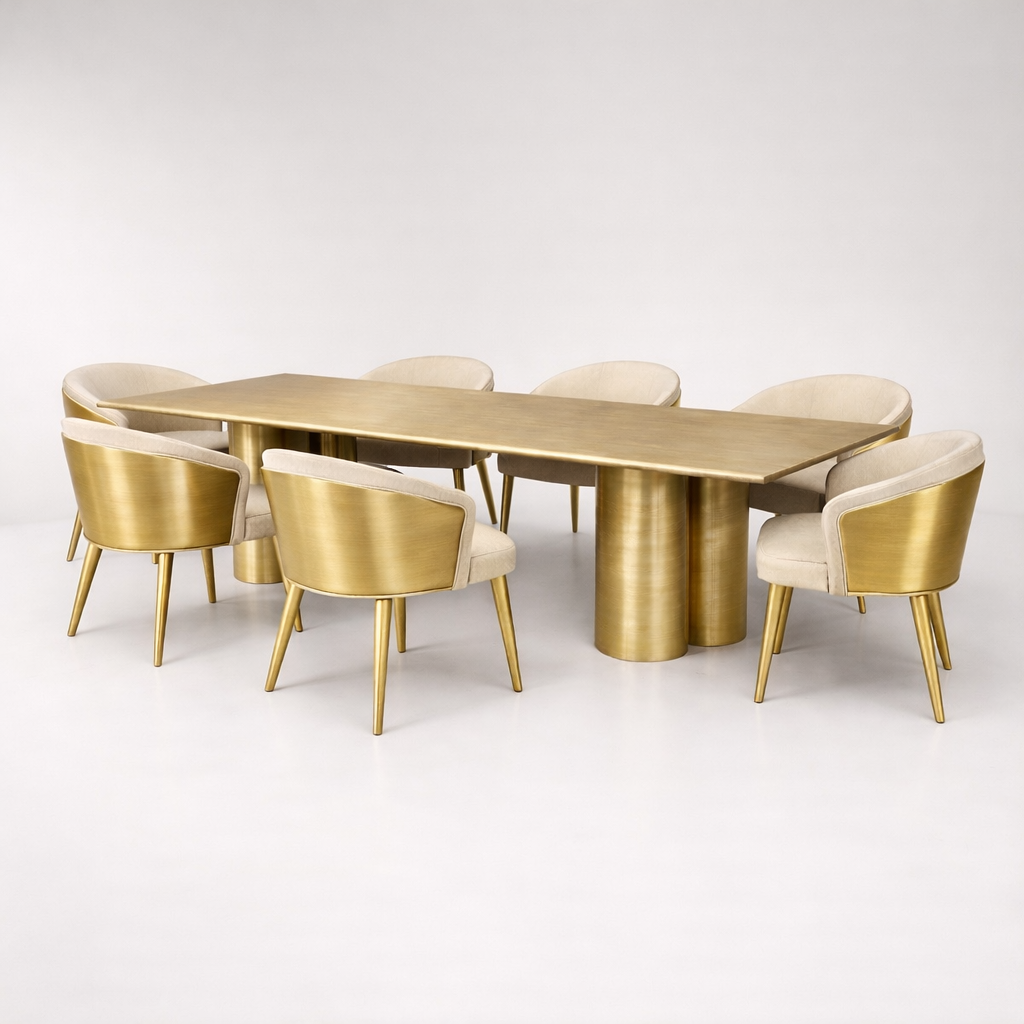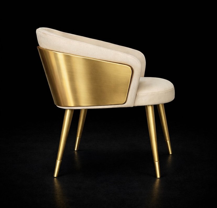 This handcrafted dining chair is made in our workshop using solid brass structure combined with a reinforced internal wood core, ensuring exceptional strength without compromising elegance.