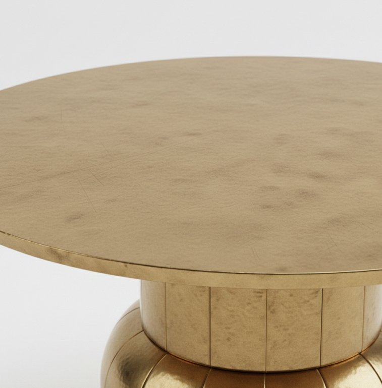 For structural strength and long-term stability, the leg structure is reinforced with an internal wood core. This concealed support enhances balance and durability while preserving the table’s full solid-brass exterior appearance.